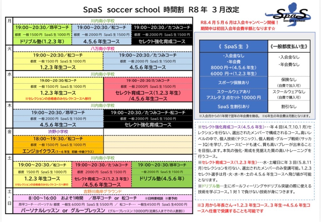 ・年会費(スポーツ保険料込み) 1.2.3年通常6000円⇨期間中3000円に、4.5.6年生通常8000円⇨期間中4000円。