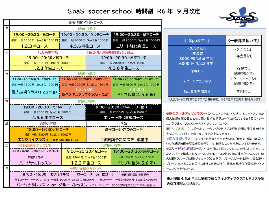 ・コース: 1.2.3年生コース(松コーチ) / 4.5.6年生コース(昂平コーチ)