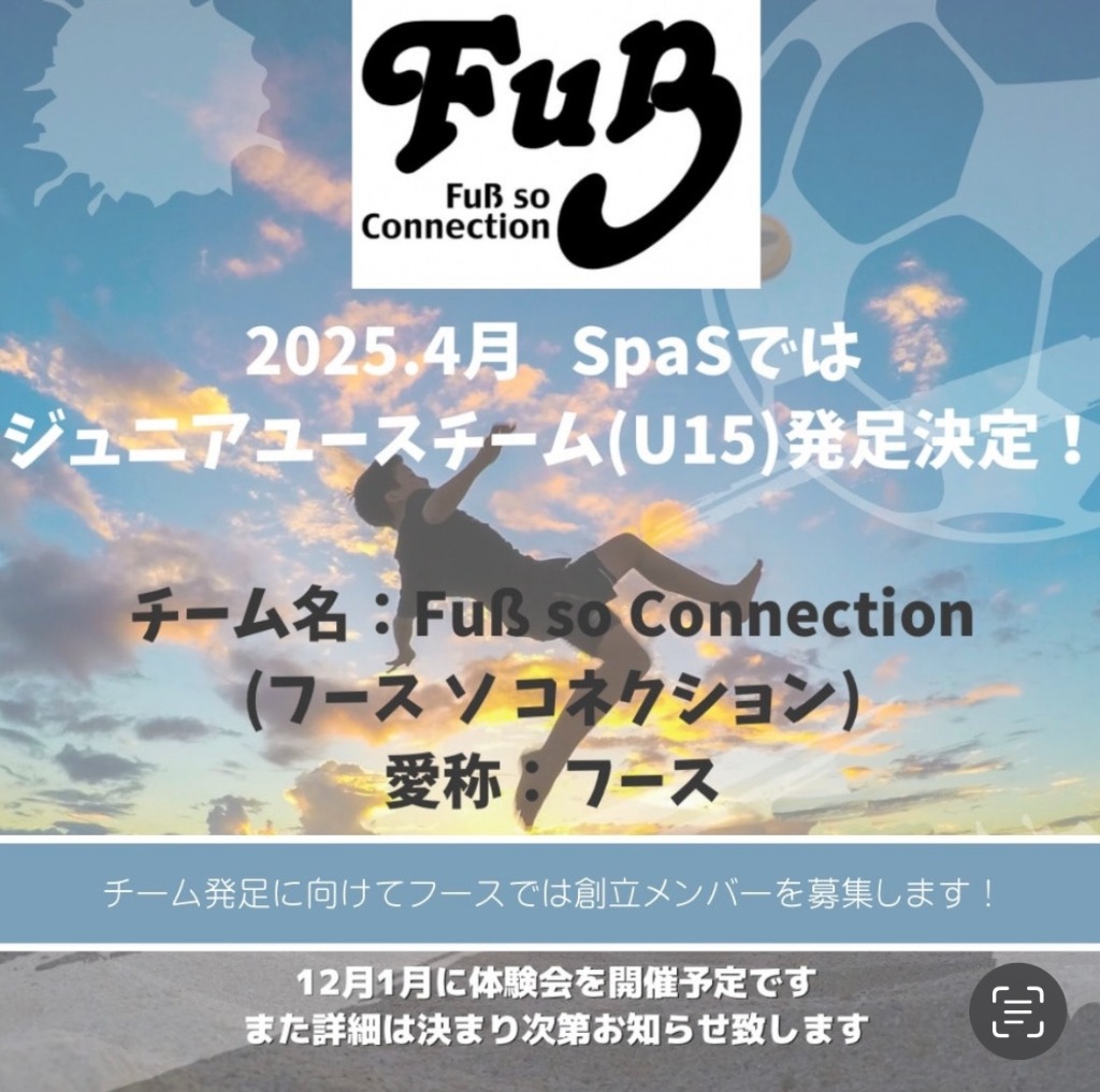 SpaSのジュニアユースチーム、フースの創立メンバーを募集中です☆