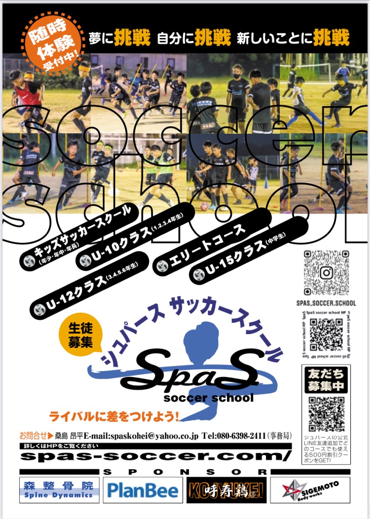 徳島市で活動を行う“SpaS soccer school(シュパース サッカースクール)”は新たにホームページを開設しました。