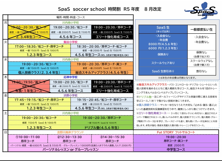 また、土曜日のグラウンドが川内南小学校へ変更となり、1.2.3年生コースと4.5.6年ドリブル塾のみ開講となります。