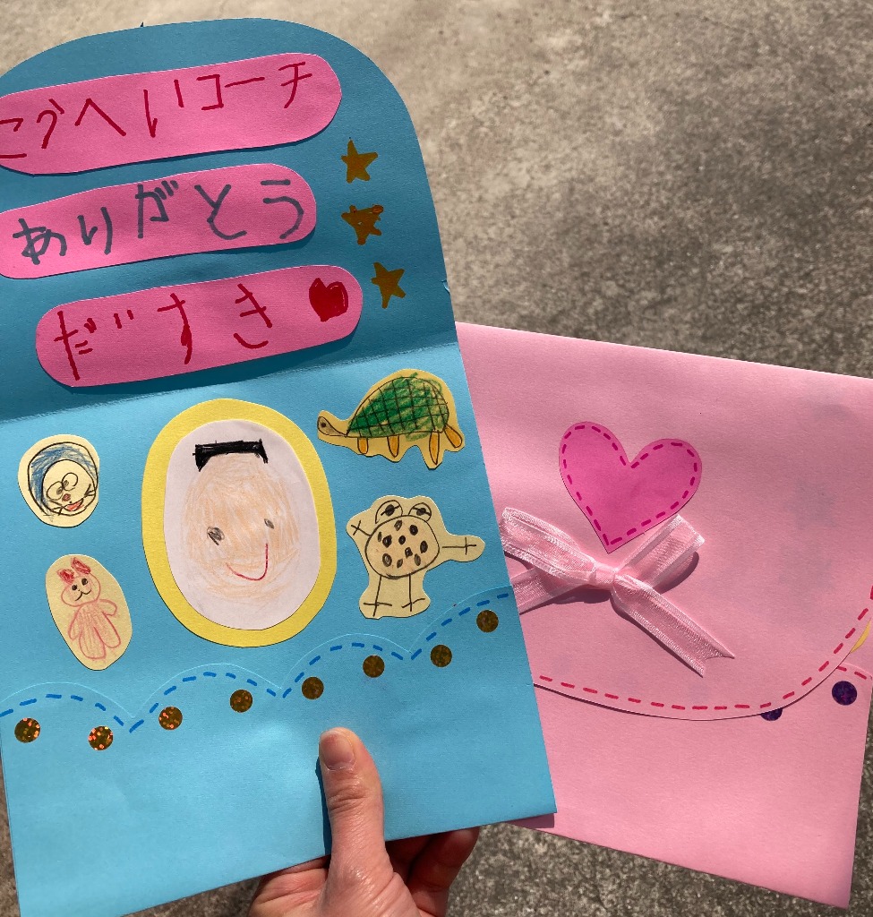 年長さんから最後に素敵なメッセージカードのプレゼントまでもらいました☺うれしいのと寂しいので、思わずウルっとしてしまいました(@_@。